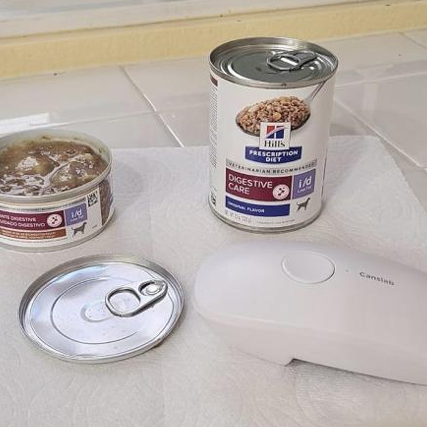 Works on pull-tab dog food cans!